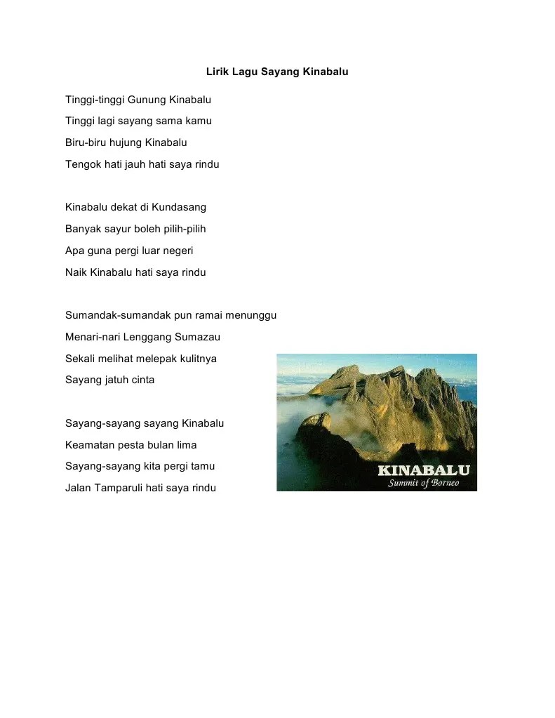Sayang Kinabalu Lyrics / Discover We Only Getting Older Baby Lyric Overlay S Popular Videos Tiktok. Dari kita saja bah itu (joseph kajangan) with lyrics chords . Biru biru hujung kinabalu tengok dari jauh,. Listen to sayang kinabalu mp3 song by 王圣凯from the chinese movie 永远的朋友free online on gaana.